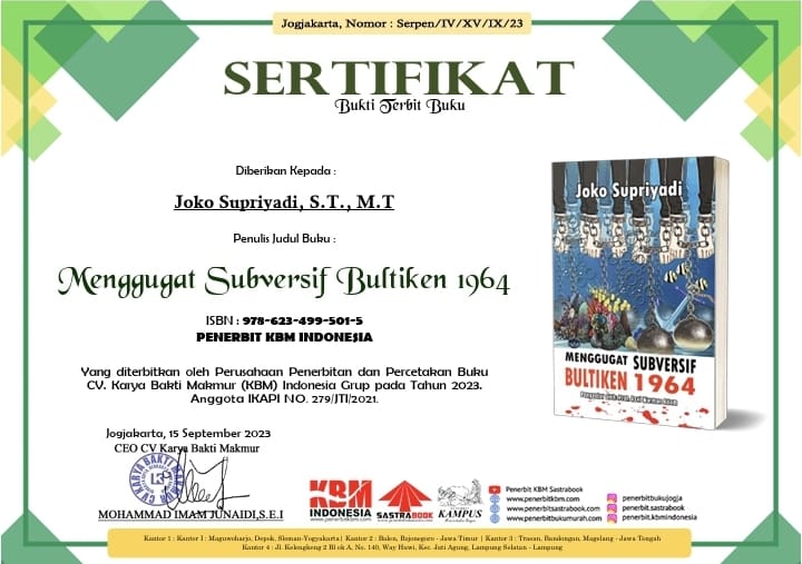 Nama Penulis : Joko Supriyadi, S.T., M.T