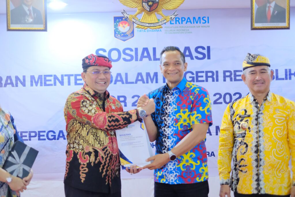 TARAKAN – Sosialisasi Peraturan Menteri Dalam Negeri (Permendagri) Nomor 23 Tahun 2024 tentang Organ dan Kepegawaian Badan Usaha Milik Daerah (BUMD) Air Minum berlangsung di Swissbel Hotel, Kota Tarakan, Kamis (9/10/25).