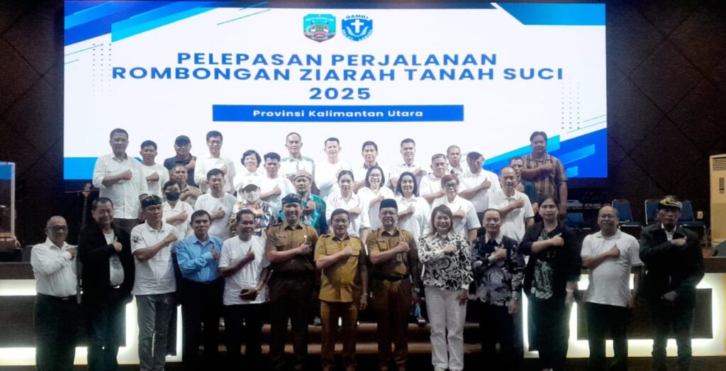 KALTARAONE.COM, TARAKAN – Pemerintah Provinsi Kalimantan Utara menggelar acara pelepasan rombongan perjalanan rohani ke Yerusalem di Gereja God The Miracle, Kampung Bugis, Tarakan, Selasa (2/11/25).