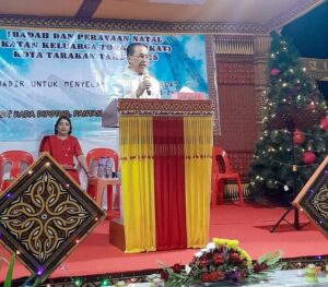 KALTARAONE.COM, TARAKAN – Ibadah dan Perayaan Natal Ikatan Keluarga Toraja (IKAT) Kota Tarakan berlangsung penuh sukacita di Gereja Toraja Kampung Baru, Jumat (9/1/2026). Perayaan Natal tahun ini mengusung tema “Allah Hadir untuk Menyelamatkan Keluarga” (Matius 1:21–24).